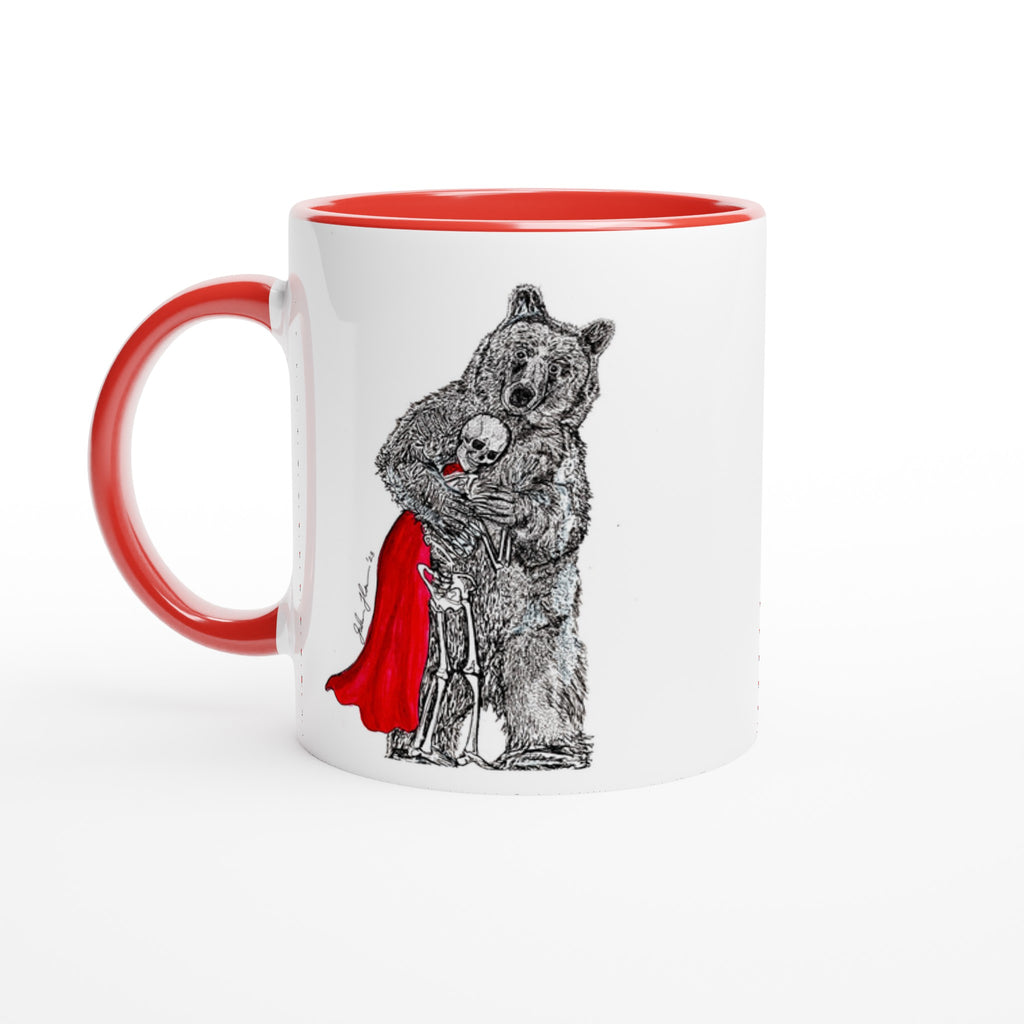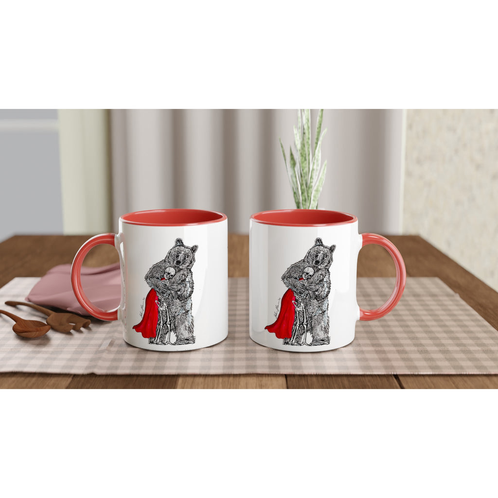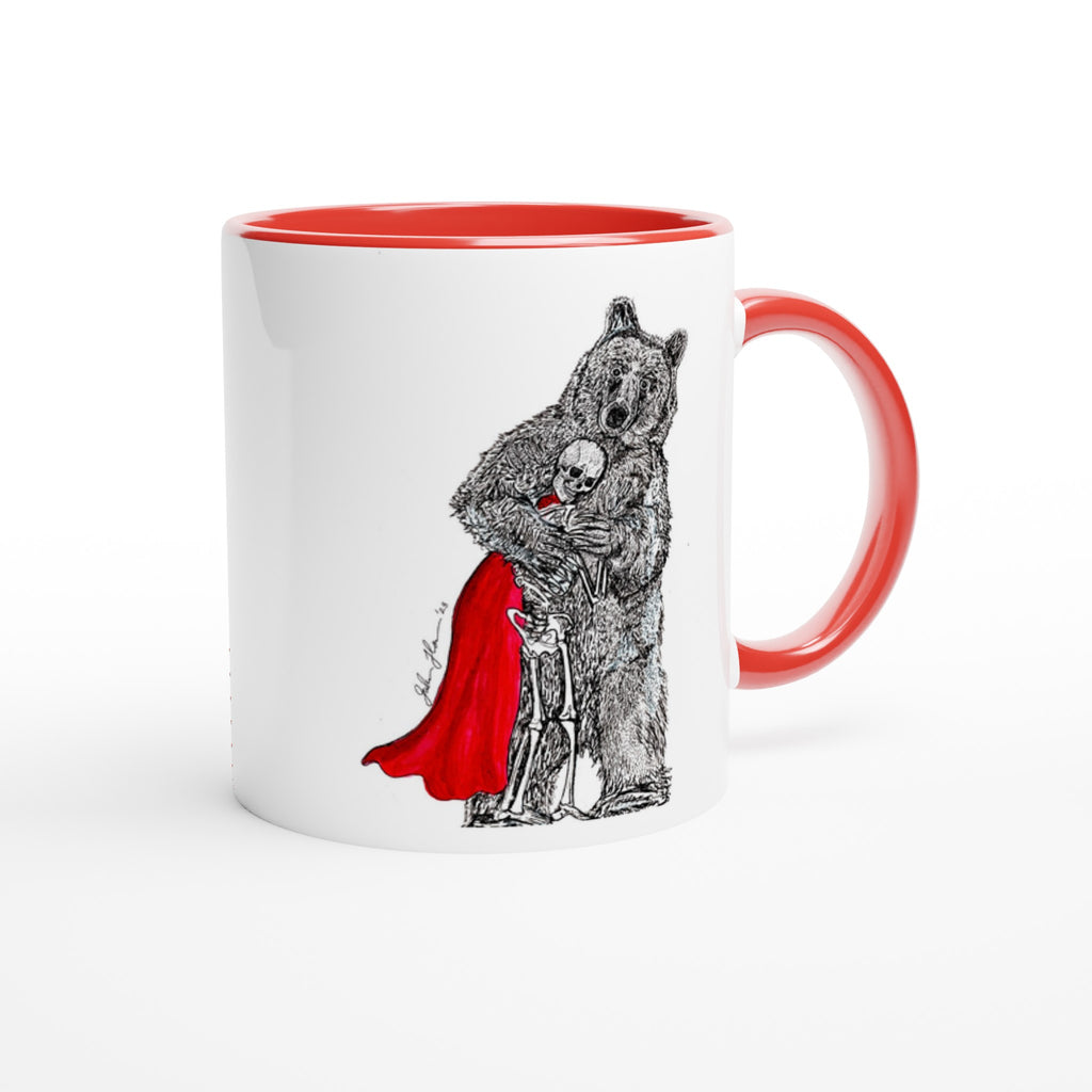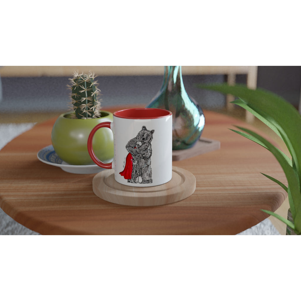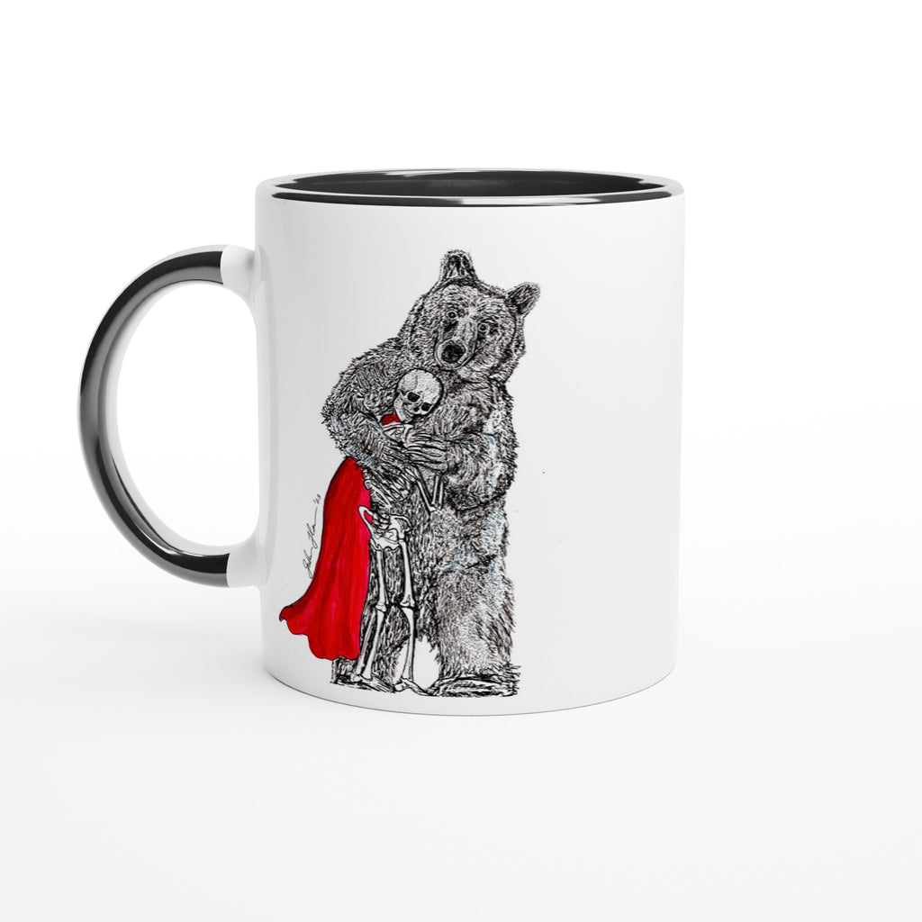 This beautiful ceramic mug is perfect for any event of the day. Your morning coffee, a hot chocolate, or any other hot beverage you enjoy. The mug is glossy white with a colored rim, inside, and handle. The prints come out beautifully and vividly on it. The print retains its quality and luster when used in both microwaves and the dishwasher.